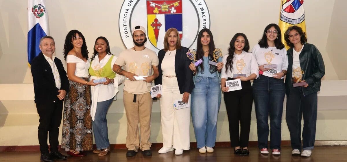 SANTO DOMINGO.- La Escuela de Comunicación de la Pontificia Universidad Católica Madre y Maestra (PUCMM) concluyó este viernes la decimonovena edición del festival de cortometrajes universitarios “Semana Más Corta 2026”, con la entrega de reconocimientos a los mejores proyectos audiovisuales. El festival exhibió un total de 29 cortometrajes, distribuidos en