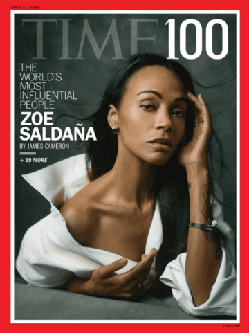 NUEVA YORK.- La actriz Zoe Saldaña, de origen dominicano y puertorriqueño, fue reconocida este miércoles por la revista Time como una de las 100 personas más influyentes de 2026 y figura entre las cuatro personalidades destacadas en su portada, en una edición que subraya su impacto en el cine global